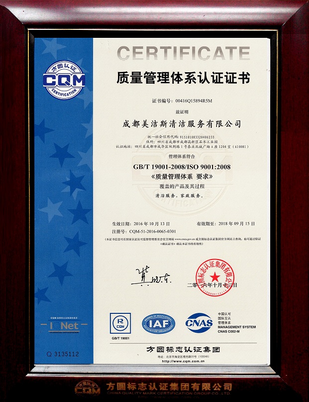 ISO90012008國(guó)際質(zhì)量管理體系認(rèn)證證書